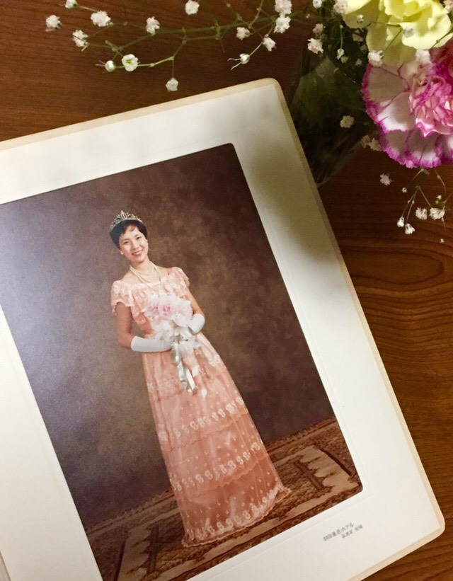お義母さんの手作りの真心のウエディングドレスを着せていただきました。